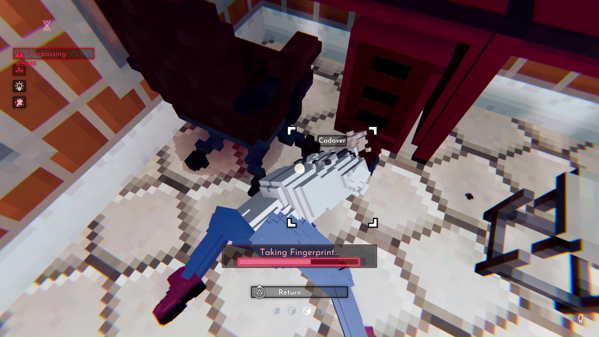 C’est dans ces moments que Shadows of Doubt prend vie. Les enquêtes, bien que générées de manière procédurale, sont cohérentes et intelligentes et exigent toujours une certaine capacité d’analyse de la part du joueur, même si la motivation du suspect est rarement un facteur ou particulièrement complexe. En tant qu’amateur de véritables mécaniques d’enquête comme celles que l’on trouve dans Return of the Obra Dinn, je suis ravi de devoir juger personnellement de l’emplacement d’un sniper en examinant la trajectoire de la balle, ou de prendre des décisions éclairées sur les suspects que je peux rayer de ma liste au fur et à mesure que j’obtiens de nouvelles preuves. Un jeu de moindre qualité se contenterait de vous dire d’où vient le coup de feu dès que vous voyez l’impact de la balle, ou de faire grogner votre personnage « hmm, je suppose que la femme de la victime a un alibi ». Mais le fait que Shadows of Doubt mette le pouvoir entre vos mains le rend d’autant plus grand – et c’est ce qui le rend si frustrant lorsque les bogues commencent à se glisser dans le jeu.