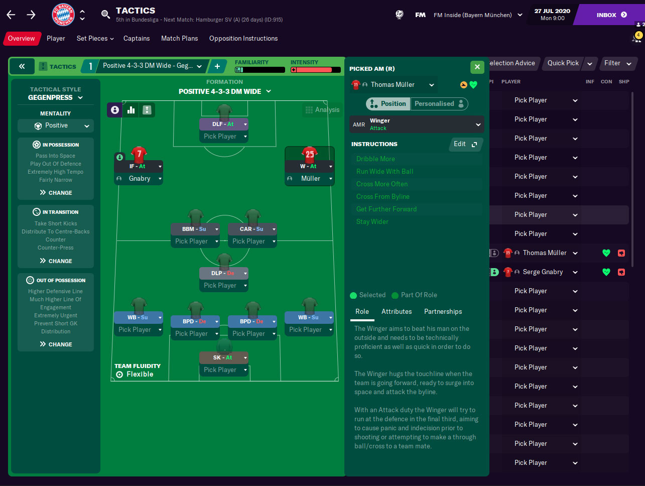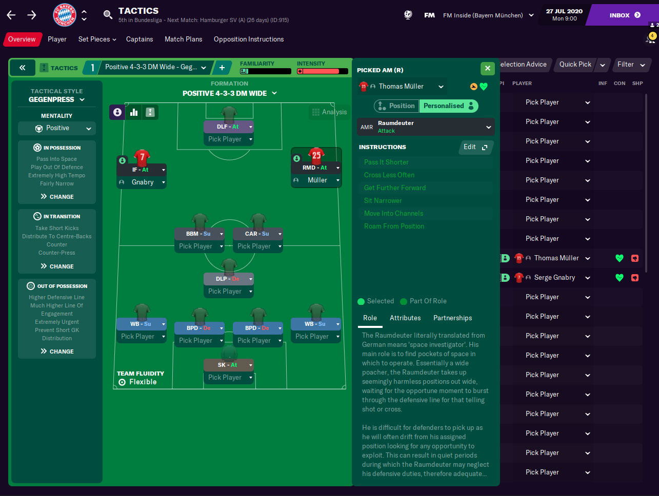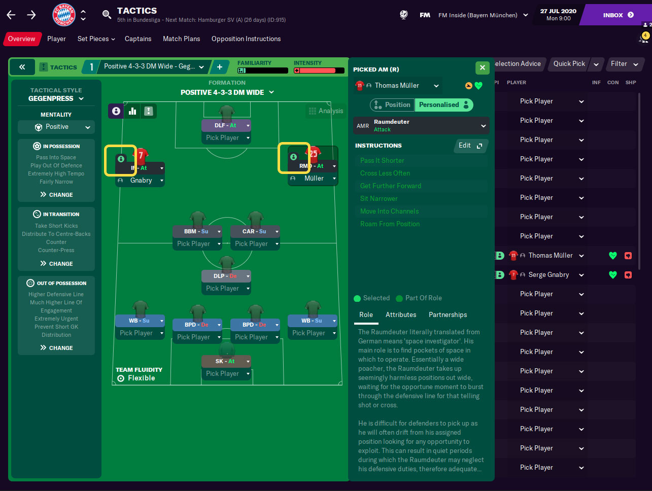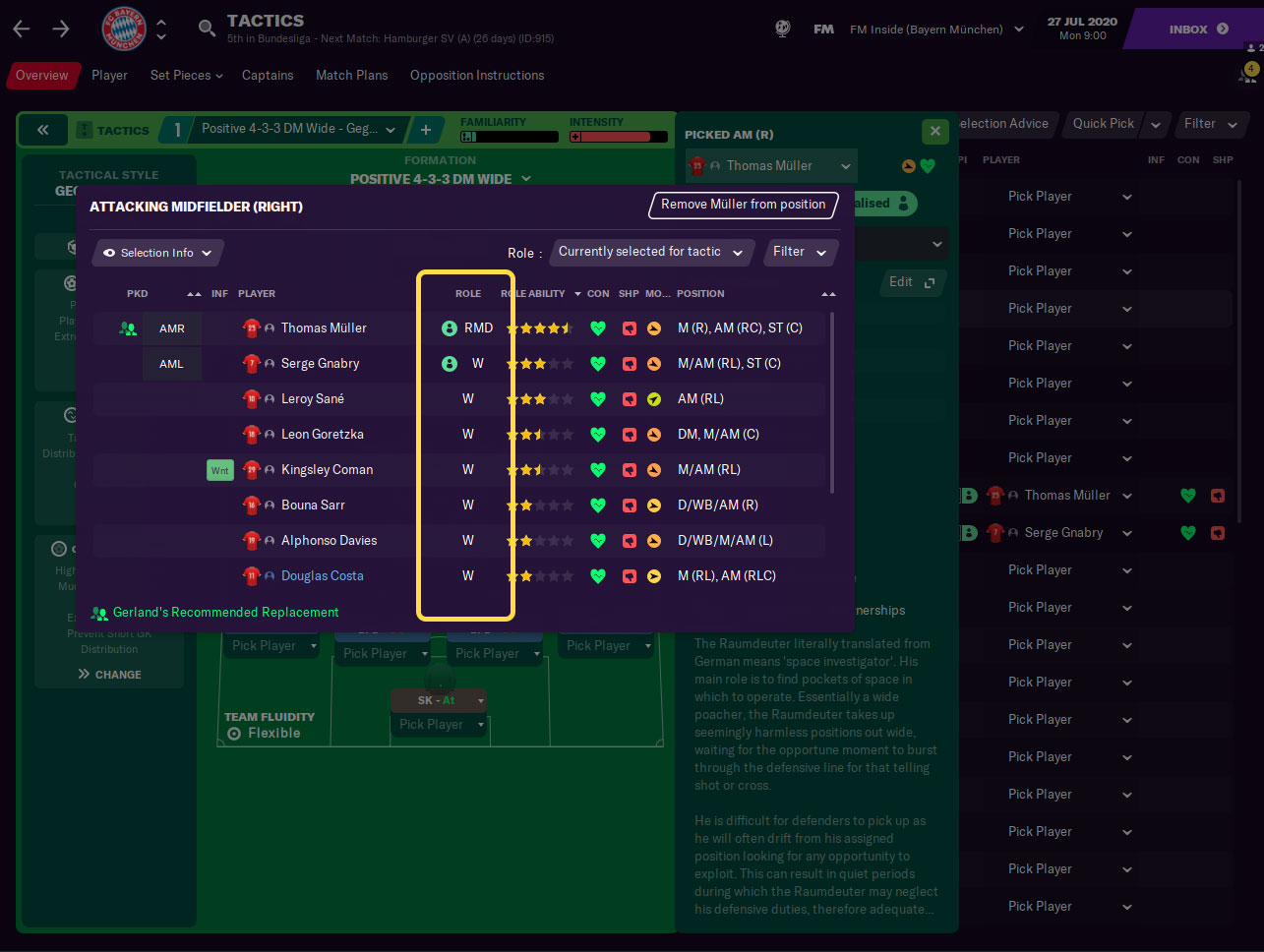 Et ce qui est génial, c’est que les instructions personnalisées du joueur sont sauvegardées pour chaque poste. Cela signifie qu’un joueur peut avoir des instructions personnalisées pour jouer en tant que Raumdeuter sur l’AMR, mais en tant qu’attaquant intérieur sur l’AML. Le jeu se souviendra de vos choix et vous montrera le rôle sélectionné pour chaque joueur capable de jouer à cette position.